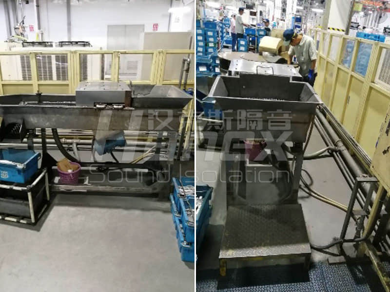 觀察窗:在隔音罩的進(jìn)料口移門上設(shè)置1扇塑膠玻璃觀察窗,玻璃使用橡膠墊保護(hù),同時輔以玻璃膠密封,為提高隔音量設(shè)計(jì)使用2層有機(jī)玻璃。觀察窗規(guī)格為:W300×H300mm方便在設(shè)備運(yùn)行時對內(nèi)部情況進(jìn)行實(shí)時觀察。