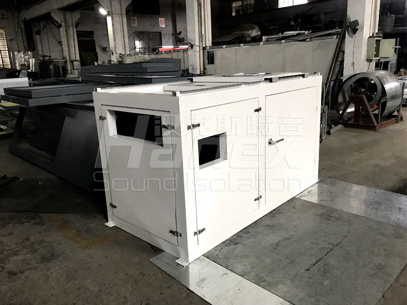 4、 隔音罩墻板可拆卸設(shè)計(jì):隔音罩使用100*100的不銹鋼方鋼搭建框架,框架內(nèi)部嵌隔音板,板與框架之間采用搭扣固定,板快在四個角各安裝一個不銹鋼搭扣,與框架鏈接。在松開4枚搭扣時即可取下該板塊。使整個隔音房可隨時拆卸。