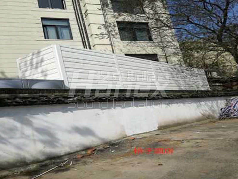 根據技術人員現場勘測以及我公司結合專業的聲學計算設計,我公司技術人員發現空調室外機工作運行時所產生的噪聲往外擴散,影響其南側居民區的生活環境。因此,為進一步控制空調室外機組噪聲的影響,我公司技術人員結合以往同類項目案例經驗,采用吸隔聲屏障對空調室外機組東北側進行噪聲控制措施處理,控制其工作產生的噪聲往居民區擴散。