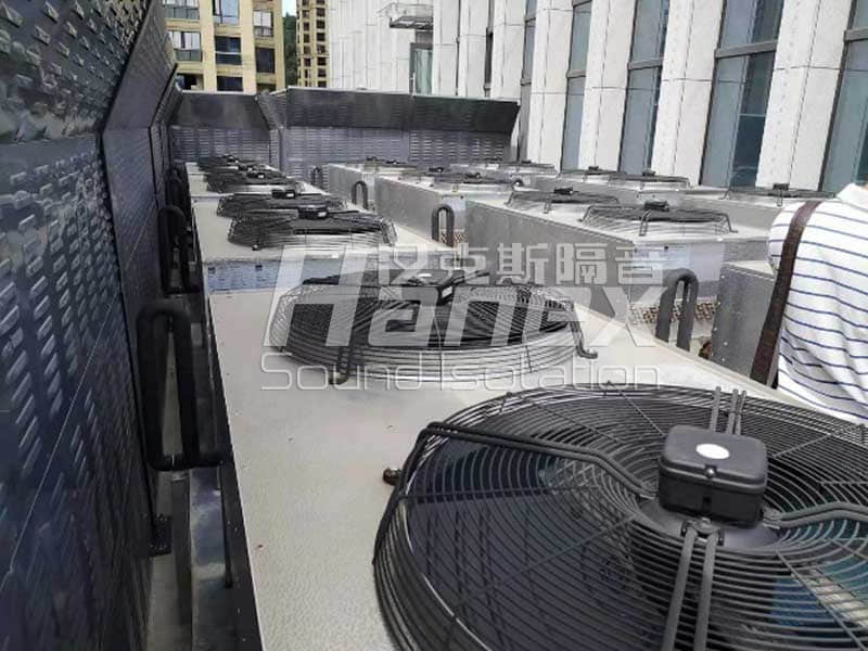 建德農(nóng)商銀行新大樓位于建德市橋東路匯金大廈旁,現(xiàn)大樓旁小區(qū)住戶反映新大樓室外空調(diào)噪聲運(yùn)行影響住戶正常生活。根據(jù)我司人員現(xiàn)場勘測,噪聲主要集中在四層平臺(tái)、五層平臺(tái)及八層平臺(tái),均為空調(diào)外機(jī)噪聲。
