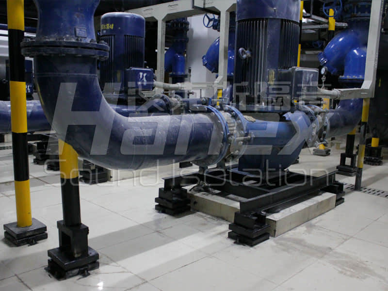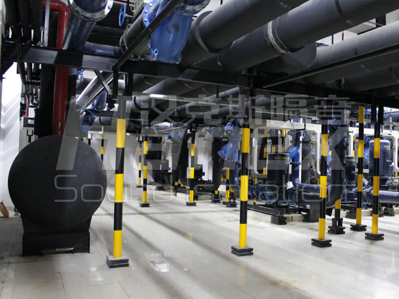 紹興人民醫院地下水泵房內的冷凝機組噪聲過大,影響周邊醫院區,尋求冷凝機組降噪處理,杭州漢克斯隔音技術工程有限公司針對該項目進行了冷凝機組減震、水泵減震、管道彈性支撐減震等方式解決振動噪聲問題。